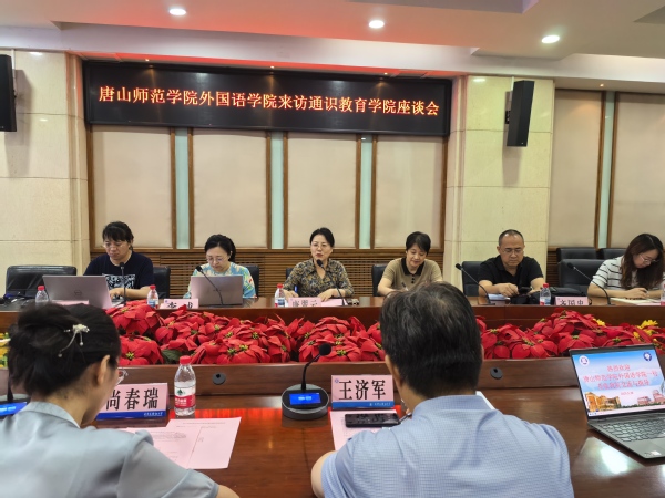 5月30日,唐山师范学院外国语学院唐翠云院长一行莅临星空app官方版官方版下载,与通识教育学院就新形态教材编写开发以及AI赋能大学英语教学改革等重要议题展开深入交流研讨。此次交流研讨在友好而热烈的氛围中进行,旨在共同探索外语教育教学的创新发展之路,进一步提升双方学院在相关领域的教学水平和科研能力。研讨会由通识教育学院副院长尚春瑞主持。会上,教务处处长兼通识教育学院院长王济军致欢迎辞,对唐翠云院长一行的到来表示诚挚的欢迎,简要介绍了通识教育学院的基本情况以及在AI赋能大学英语教学方面取得的成绩与经验,表达了对未来双方进一步深化合作交流的期待。通识教育学院李冰芷、刘颖、刘燕三位教研室主任依次围绕本校教师在蓝鸽AI一体化外语教学平台使用中的经验和问题进行了详细分享。唐翠云院长介绍了唐山师范学院外国语学院在教材编写方面的初步设想和已有的工作基础,强调了新形态教材对于适应新时代外语教学需求、满足学生多样化学习方式的重要意义。双方共同探讨了在编写过程中面临的内容选取、技术应用、团队协作等困难,并一起寻求切实可行的优化路径,提出了多项有建设性的提议。此次交流研讨活动为唐山师范学院外国语学院和星空app官方版官方版下载通识教