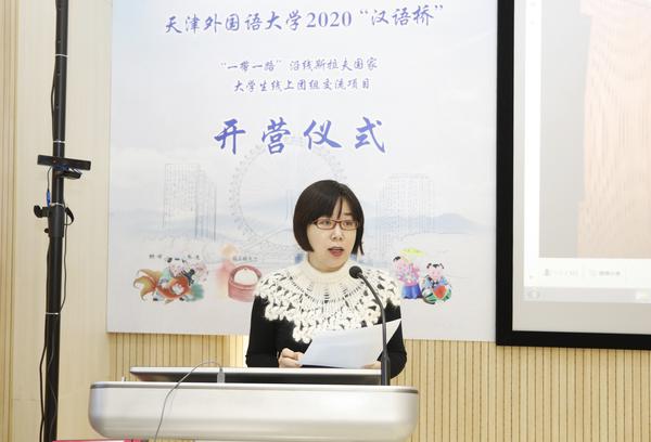 李迎迎指出,“汉语桥”是中国教育部中外语言交流合作中心历年来着力打造的各国学生学习汉语、了解中国的重要平台。2020年,面对新冠疫情在全球的肆虐,中外语言交流合作中心首次组织“汉语桥”线上学习交流团组项目。学校积极面向海外合建孔子学院和友好院校开展“汉语桥”项目合作与宣传组织,在俄罗斯伏尔加格勒国立社会师范大学孔子学院、南乌拉尔国立大学、莫斯科市立师范大学、库班国立大学等友好交流院校的支持下,“一带一路”沿线斯拉夫国家大学生线上团组交流项目招收两百余名国际学生,为俄罗斯、乌克兰、亚美尼亚等“一带一路”沿线斯拉夫国家青年学生搭建了走进汉语、感知中国的“云端活动平台”。她希望,各位学员珍惜学习机会,进一步提高汉语综合运用能力,增进对中国文化的了解,为加强中外文化交流、语言合作和文明互学互鉴贡献力量。