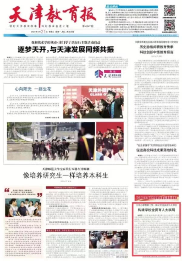 本次交流会分上下两个半场,主旨发言环节邀请首都经济贸易大学原党委书记冯培教授,北京教育学院校长研修学院迟希新教授,天津大学心理健康教育中心主任杨丽,天津市耀华中学党委副书记、校长侯立瑛,星空app官方版官方版下载附属滨海外国语学校党委书记、校长王丽等分别就“推进大中小思政教育一体化的两个思维”“五育并举 融合育人——构建新形势下学校全员育人大棋局”“大中小学生心理危机预防与干预策略”“汇聚一体化建设合力 共筑思政教育同心圆”“与新时代同频共振 用英语讲好中国故事——中小学英语课程思政建设的思考与实践”等进行了深刻讲解论述。