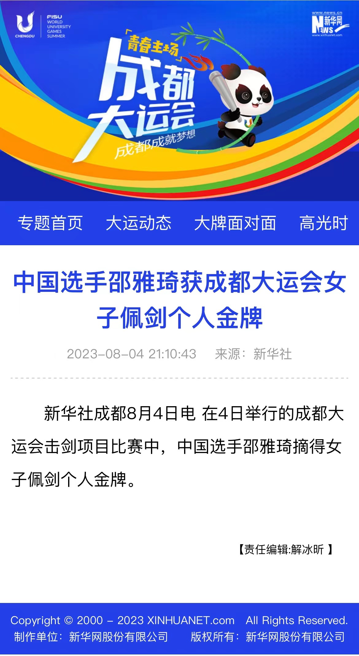 新闻链接:http://www.news.cn/sports/2023-08/04/c_1129787153.htm
