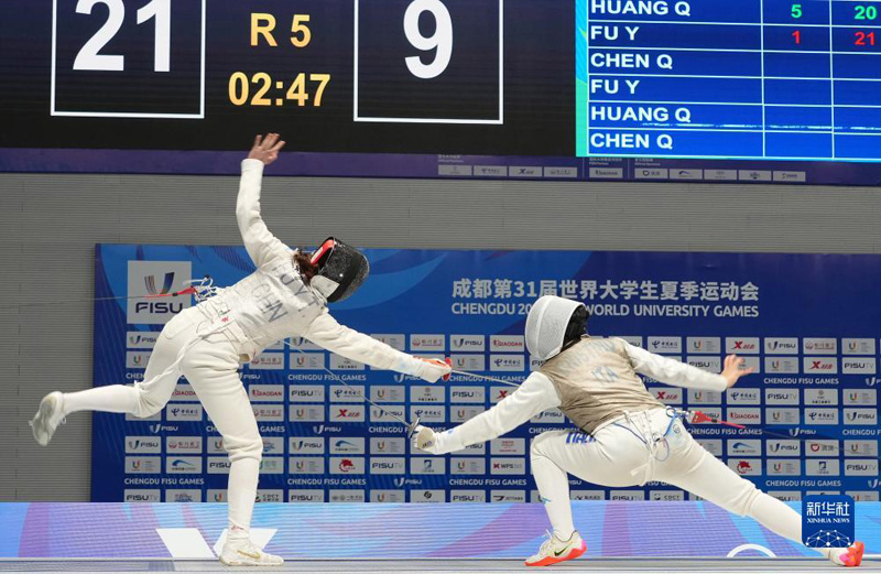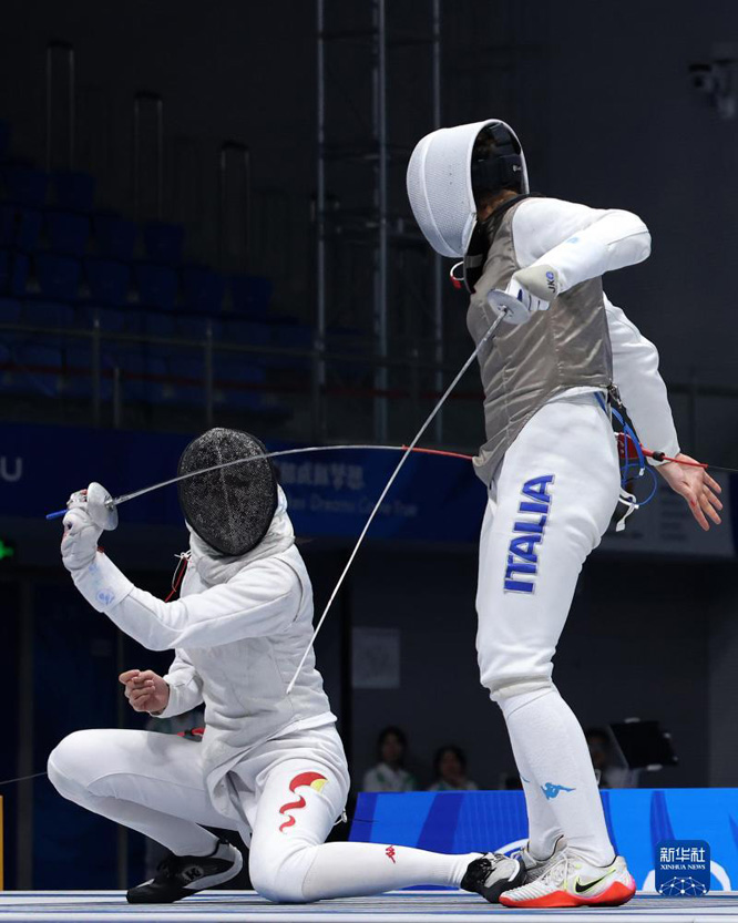 当日,在成都举行的第31届世界大学生夏季运动会击剑女子花剑团体金牌赛中,中国队以45比22战胜意大利队,获得金牌。