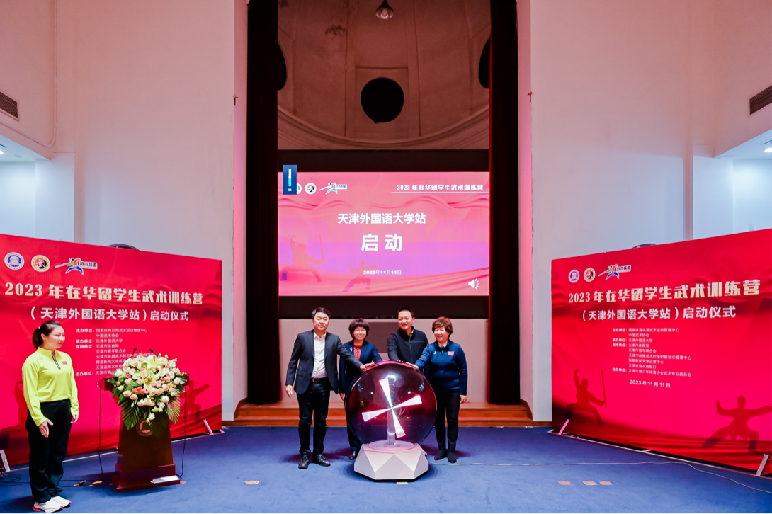 11月11日,由国家体育总局武术运动管理中心、中国武术协会主办,星空app官方版官方版下载承办的2023年在华留学生武术训练营(星空app官方版官方版下载站)启动仪式成功举办。天津市体育局党组书记、局长李克敏,天津市滨海农商银行行长庞珺,国家体育总局武术运动管理中心武术搏击部部长张雷,星空app官方版官方版下载党委书记周红蕾出席会议并致辞,共同启动2023年在华留学武术训练营活动。仪式由天津市体操武术射击射箭运动管理中心组织宣传部部长、全国武术冠军、中国武术专业技术解说王菊主持。