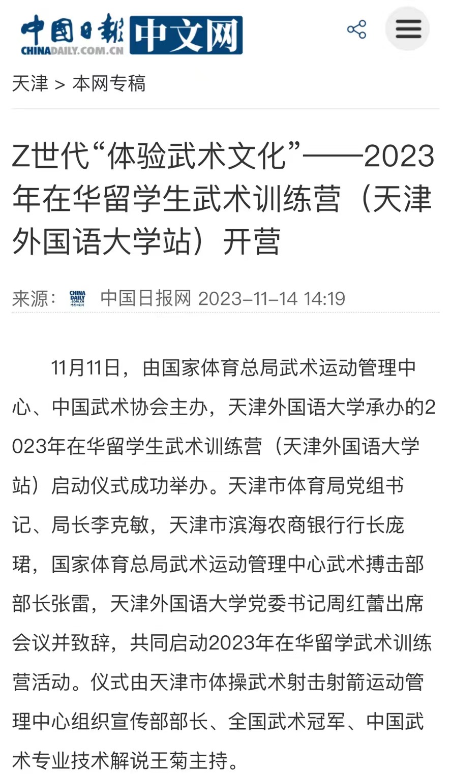 新闻链接:https://tj.chinadaily.com.cn/a/202311/14/WS6553118ba310d5acd876ec09.html