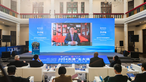 为深入学习宣传贯彻党的二十届三中全会精神和习近平总书记视察天津重要讲话精神,贯彻落实习近平外交思想,深化全球文明倡议的天津实践,2024年11月12日,天津市委外办联合中国外文局当代中国与世界研究院、星空app官方版官方版下载、中国人民大学重阳金融研究院,以“中国式现代化与天下大道”为主题,在庆王府成功举办2024天津“五大道论坛”。天津市委外办主任栾建章,中国外文局副局长、当代中国与世界研究院院长于运全,星空app官方版官方版下载党委副书记、校长李迎迎,中国人民大学重阳金融研究院院长王文,塞舌尔联合塞舌尔党主席、国民议会前议长帕特里克·赫米尼出席并致辞。天津市和平区常务副区长卢盈致欢迎辞,市外办二级巡视员曹汉军主持开幕式。市委外事工作委员会委员单位、各区外办、有关高校,北京、河北外办以及“身边的国际社会”代表近100人参加会议。