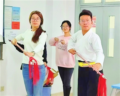 夜校课堂让学子们教学相长。京剧团的负责学生申菊带着普及非遗、弘扬国粹的强烈使命感投入其中。她深知传统文化传承不能出现偏差,所以格外注重讲解内容的正确性,查资料、向老师请教,备课过程中自己也学到了很多知识。“把京剧知识学到自己身上,再与同学们分享,进而发掘出传统艺术更大的趣味性,这让我更有兴趣和信心继续学习、推广国粹艺术。”申菊说。