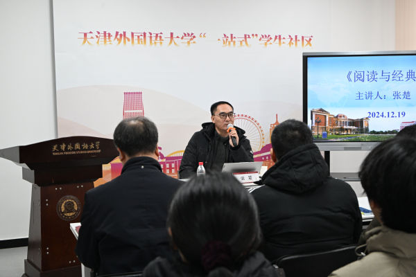 为推进星空app官方版官方版下载专业学科建设,培养兼具专业素养和创作实践能力的复合型人才,12月19日下午,天津市作家协会副主席、文学院院长张楚应邀来到天外滨海校区,走进“一站式”学生社区服务中心,开展了主题为“阅读与经典”的专场讲座,这也是天外“一站式”学生社区服务中心成立以来的首场活动。天外国际传媒学院院长马兰州主持讲座,学院相关专业近百名师生聆听了讲座。