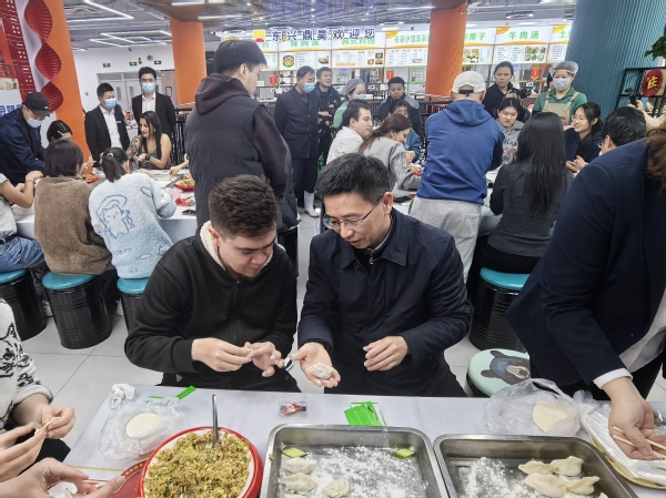 为喜迎2025年新年,传承中华传统文化,增进中外师生情谊,营造温馨、和谐的校园氛围,12月31日,星空app官方版官方版下载在两校区学生食堂举办中外师生庆新年包饺子活动。校党委副书记胡志刚、副校长程国毅与百余名中外师生欢聚一堂,共同庆祝元旦佳节的到来。