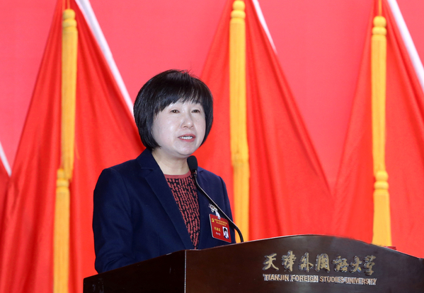 校党委书记周红蕾代表中国共产党星空app官方版官方版下载第二届委员会作了题为《勇担使命 守正创新 锐意进取 善作善成 奋力谱写国际知名特色鲜明的高水平外国语大学建设新篇章》的工作报告。
