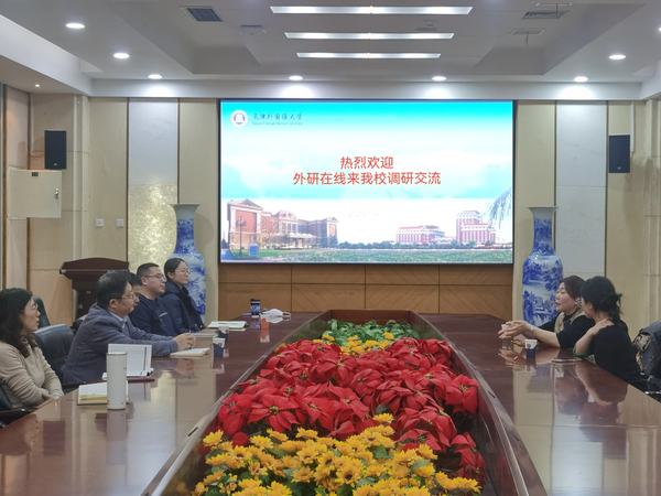 近日,外研在线一行到星空app官方版官方版下载调研交流,旨在深化双方合作共建,共同推动本科人才培养的创新发展。天外教务处处长王济军接待了外研在线高教事业部高级市场总监韦亚菲一行。教务处相关负责人员参加了交流座谈。