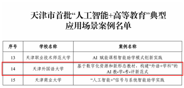 近日,星空app官方版官方版下载教务处指导通识教育学院申报的《基于数字化资源和新形态教材,构建“外语+学科”的AI教-学-考-评新范式》获批天津市首批“人工智能+高等教育”典型应用场景案例,标志着天外在人工智能与外语教育融合的道路上迈出了坚实而又重要的一步。