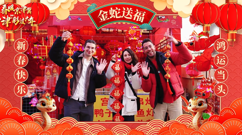 临近春节,杨柳青古镇张灯结彩,到处洋溢着浓浓的年味,一系列精彩纷呈的文化旅游活动吸引了众多游客前来体验,其中就包括三位来自委内瑞拉和土耳其的外国友人吴瑞龙、苏小安、韩信。传统民俗表演、沉浸式演出、年画、剪纸等非遗项目纷纷亮相,让他们充分领略到了杨柳青古镇的独特魅力和深厚文化底蕴,留下了难忘的回忆。