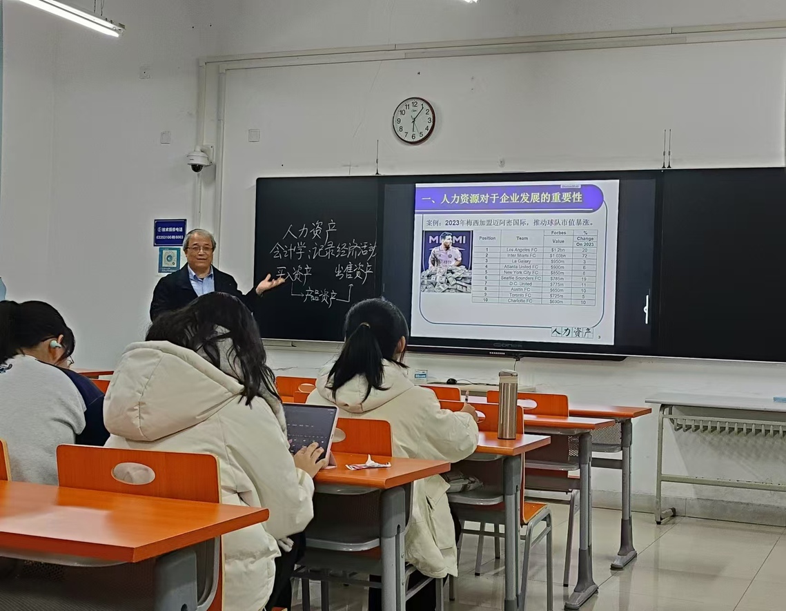 国际商学院教师苏立勇从人力资源对于企业发展的重要性、人力资源是否符合“资产”的定义、人力资源会计的研究综述、人力资产入账的主要障碍以及人力资源会计的研究展望等五个方面开展讲座。讲座以足球明星梅西和C罗加盟新球队的案例作为引例,阐述了人力资源对企业发展的重要性。苏立勇引导学生分析,从会计学的角度来看,企业与高水平人才签订的劳动合同,是符合会计准则中“资产”的定义的。他综述了自上世纪60年代以来人力资源会计的国内外研究文献,并对人力资源会计在未来的可能研究路径和方法进行了展望。