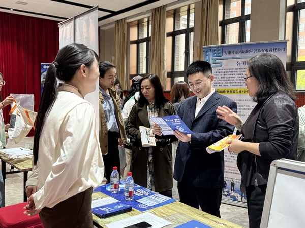 此次招聘会共吸引了包括中化第十三建筑有限公司、中化二建集团有限公司、中材水泥海外发展(天津)有限公司、深圳市理事士新能源发展有限公司、南京诺唯赞生物科技股份有限公司、天津英华学校等在内的43家优质企业参与,涉及跨境电商、海外销售、国际外贸、小语种翻译、新媒体运营、文案编辑、课程规划、外语教师等共760个多元化职位,与小语种专业人才匹配度较高。毕业年级学生手持简历穿梭展位,积极与招聘人员交流,主动了解岗位条件与职业发展前景,寻求符合自己职业规划的就业机会。用人单位针对毕业生关心的岗位要求、薪资待遇、发展路径等问题详细解答。招聘会还设立了“简历指导”“职业生涯规划指导”专区,吸引其他年级在校学生的参与,学生们积极与用人单位咨询实习兼职、简历投递等问题,提前明确就业方向,做好职业规划。