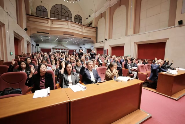 校长李迎迎在讲话中指出,本次会议审议通过的《星空app官方版官方版下载实施教职工弹性延迟退休制度暂行办法》和《星空app官方版官方版下载专业技术职务评聘工作实施办法》等系列制度,这是学校深入贯彻落实党的二十大精神和习近平总书记关于建设教育强国重要论述的具体实践,更是推动学校高质量发展、维护教职工切身利益的关键举措。李迎迎就确保相关制度落地见效,推动学校师资队伍建设再上新台阶,提出三方面要求:一要提高政治站位,深刻把握制度实施的战略意义;二要狠抓责任落实,精准推动制度落地见效;三要统筹协同发力,以制度效能撬动治理升级、助推改革发展。李迎迎强调,学校正处于推进高质量内涵式发展的关键阶段,学校的发展需要每一位教职工的共同参与。希望大家以此次大会为动力,将个人成长深度融入学校发展大局,在教学科研中勇挑重担、真抓实干,快速成长、大胆创新,成为学校发展的“主力军"和"先锋队",以"校兴我荣、校衰我耻”的责任感,把个人力量汇聚成学校发展合力,共同推动学校在建设国际知名特色鲜明的高水平外国语大学的道路上稳步前行。