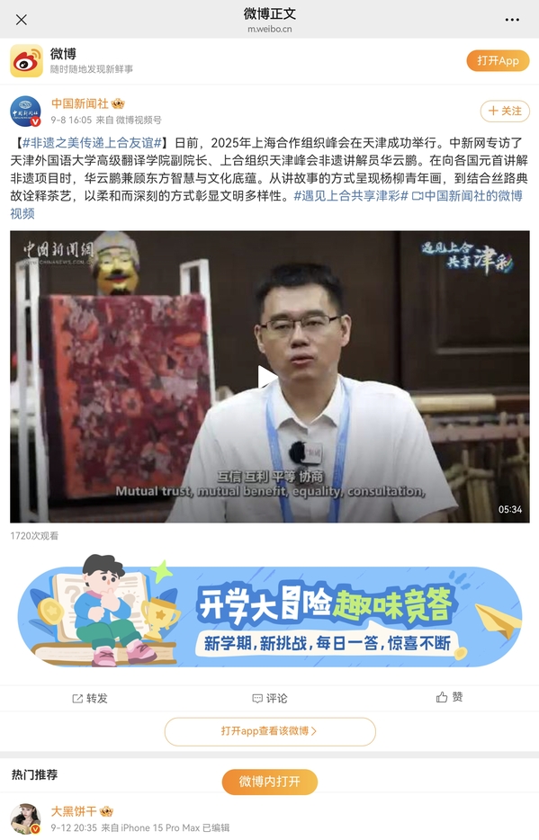 【媒体天外】天津日报、津云报道高校开学新举措。其中,报道我校将新生入学教育从“开学后的集中培训”向“报到前的主动融入”的转变,以重大历史时刻为鲜活思政教育素材,以星空app官方版2025最新版与历史传承为根基,通过组织新生代表观看纪念中国人民抗日战争暨世界反法西斯战争胜利80周年大会等,前置性进行爱国主义教育,引导学生将国家叙事、民族记忆与个体成长深度融合。全文转载如下:9月6日,南开大学、天津大学、天津科技大学、天津城建大学、天津音乐学院、天津市大学软件学院等多所高校新生报到,大学校园里彩旗飘扬,学长学姐志愿者们举着院系牌热情引路,新生和家长提着行李穿梭其间,各式各样的迎新活动仪式感满满,让学子们在学校的暖心和热