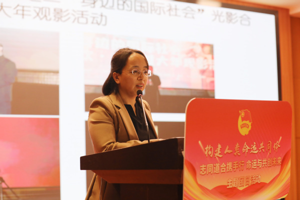 在践行构建人类命运共同体主题发言环节,天津市人民政府外事办公室联络处处长李文家以“做融通中外的使者”为题,以“身边的国际社会”为主线,生动形象地讲解了习近平外交思想在天津的实践,介绍了天津在对外交流中的优势和特色,并以自身在实际工作中的经历和感悟,鼓励同学们要把握好“求中”的根基,深入学习中国历史和传统文化,厚植家国情怀;同时,也要学好专业知识,在“求外”的实践中发挥专业优势,坚持胸怀天下,践行使命担当,争做融通中外的使者。